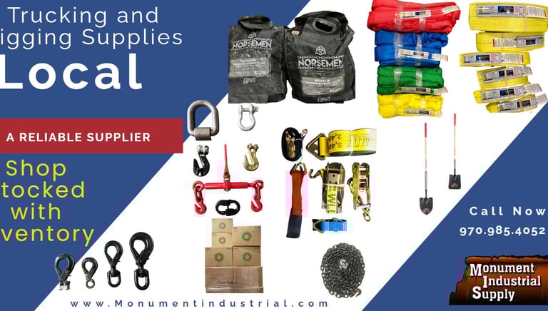 "Industrial Supplies on hand, delivery available. Locally owned with over 15 years experience in Industrial supply's. The team collectively has 30 plus years in customer service. Our goal is to provide excellence in all areas to help you achieve your goals. We are a partnership and are dedicated to you. The shop is fully loaded, stop by and get what you need or we can deliver it to you right away. Please let us know if you have any question or recommendations. Products: Chain and Hardware, Synthetic Slings, Ratchet Straps and Tie Downs, Towing Hardware, Shovels, Rakes and Brooms, Shop Rags."